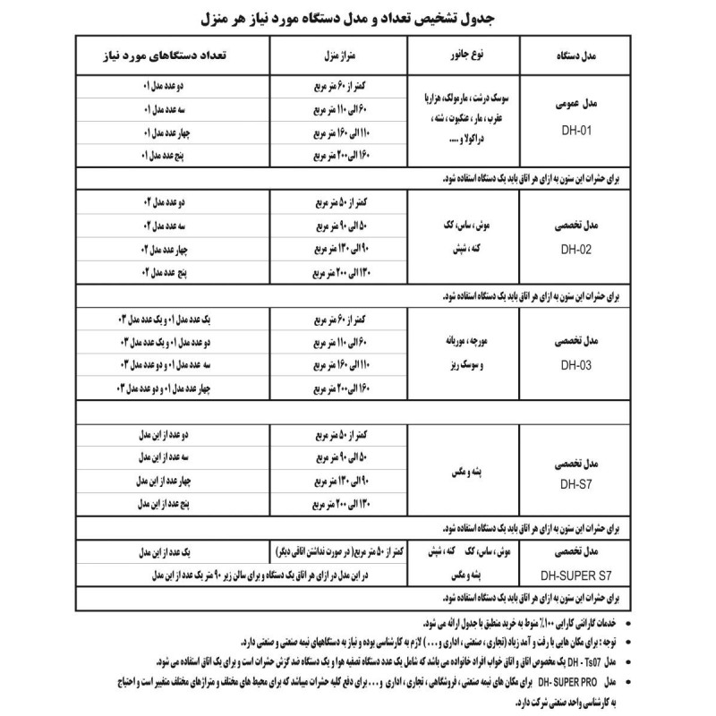 لطفا خرید خود را طبق جدول و متراژ خرید فرمایید که شامل گارانتی عملکرد شرکت IranDH شوید .